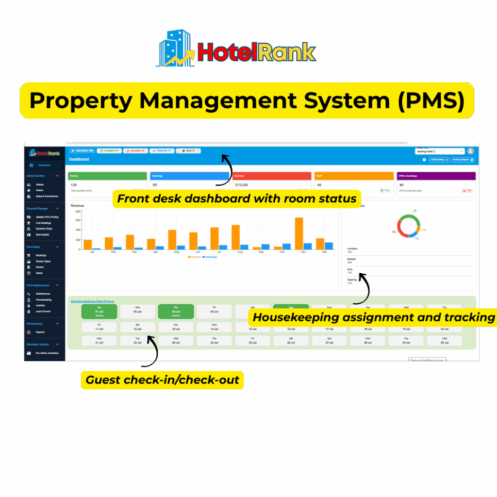 Yes. Our PMS covers front desk management, check-ins/check-outs, guest details, housekeeping, billing, reporting, and more—all from one dashboard.